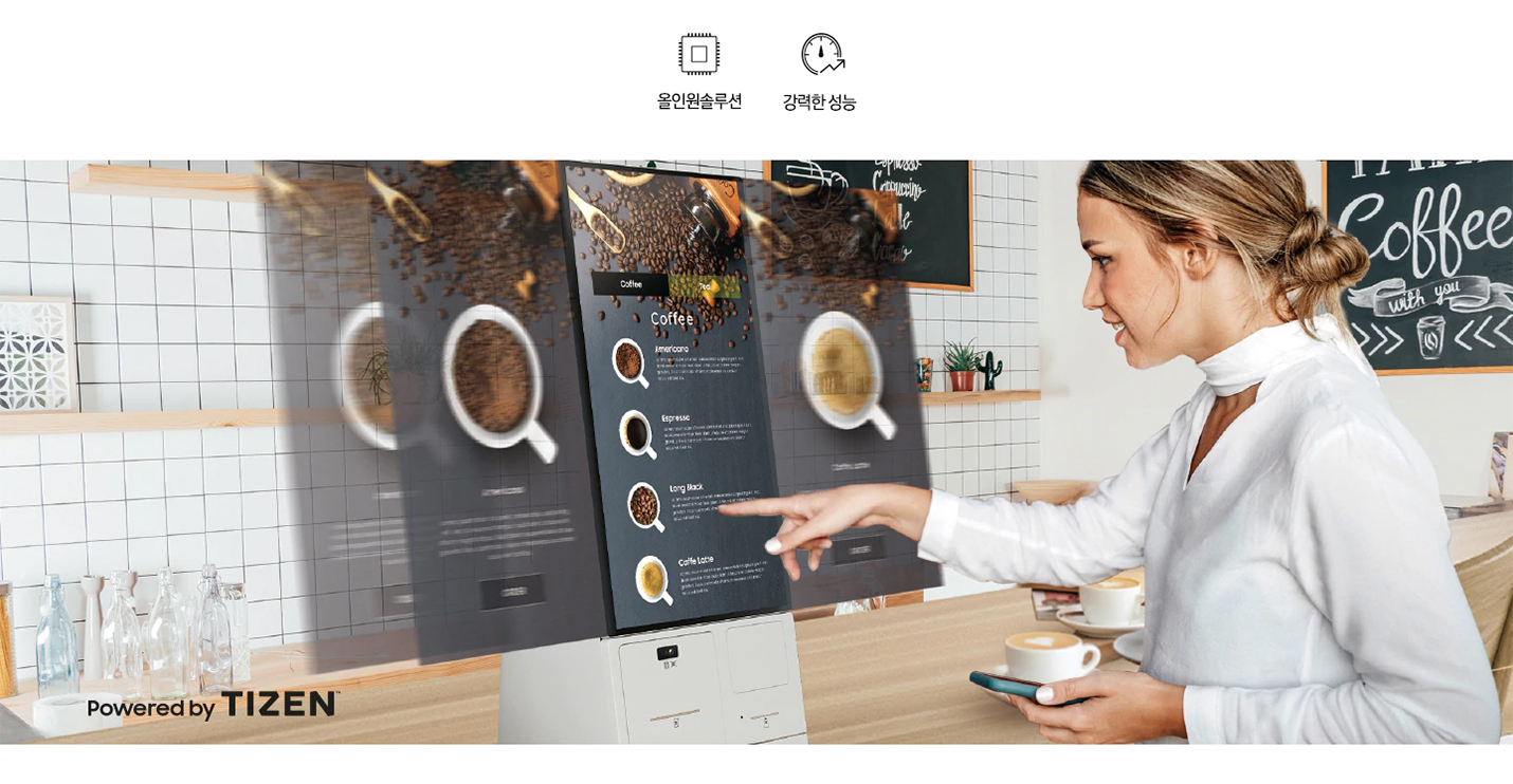 삼성의 검증된 Soc(System on Chip) 기술을 기반으로 개발되어 외부 PC 없이도 키오스크를 운영할 수 있습니다.